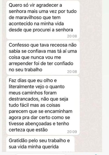 Com anos de dedicação ao mundo espiritual, Mãe Debora atua com amor, ética e verdade para ajudar pessoas a encontrarem clareza, equilíbrio e direção em suas vidas. Sua missão é servir como ponte entre o plano material e espiritual, oferecendo atendimentos personalizados com oráculos, orientação espiritual, limpezas e trabalhos afetivos.